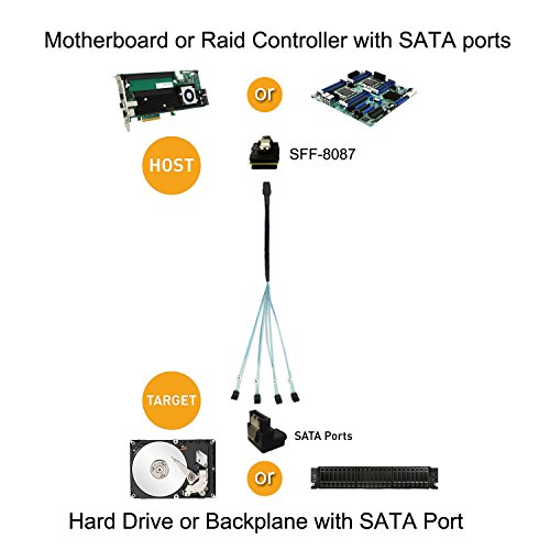 Mini SAS 36 (SFF-8087) Male is Host, 4 x SATA female is target