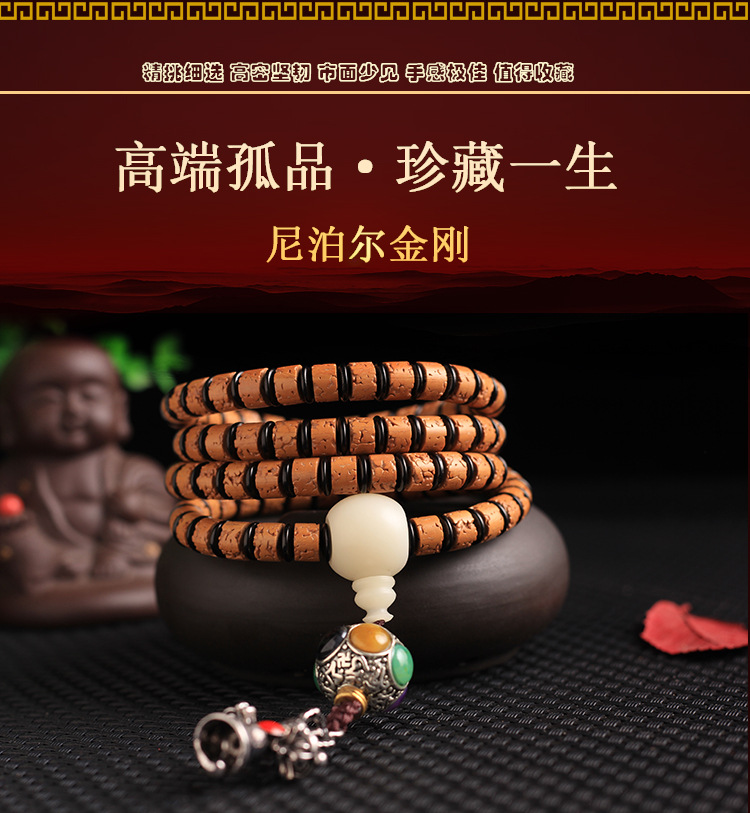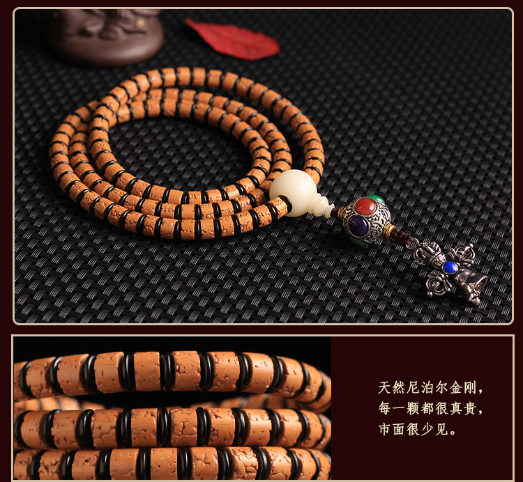 天然尼泊尔5五瓣108颗无齿打磨小金刚菩提子男女手串佛珠项链配饰