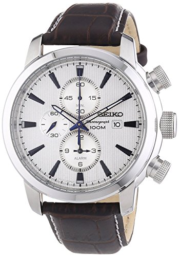 세이코가 구미용으로 릴리즈 한 일본 미발매 모델.날쌔고 용맹스러운 grayish 실버 다이얼에이라고 아름답다블루스틸의 바늘을 구비한(갖춘) 세련된 알람 크로노그래프에,견고한 솔리드 스테인레스와 두께가 있는 부드러운 가죽 벨트가 질감의 높은 만들어 포함이 되고 있습니다.스펙 적으로도,1/5 초스톱워치,알람 기능,데이트 캘린더,100m(10기압)방수,루미 브라이트 축광 기능등등 충실히 해 있습니다. 시계의 태엽을 감는 꼭지도 큰으로 조작하기 쉽고, 전체로 상질의 분위기의 신작입니다.