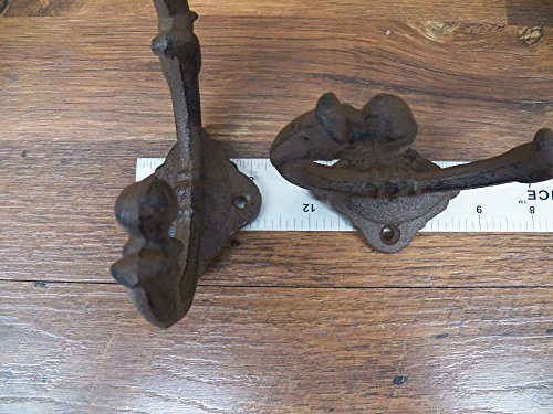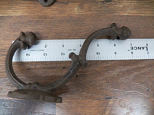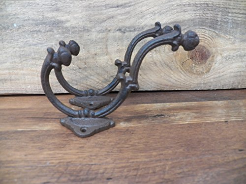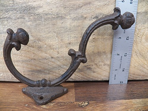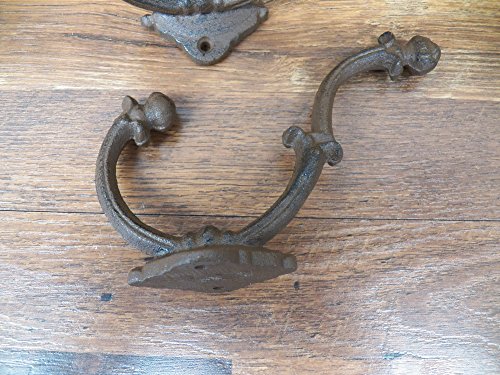 -. Title : Lot of 2 Beautiful Large 7" x 4.5" Fancy Ornate Cast Iron Coat Hat Hooks Hangers- Heavy Duty
