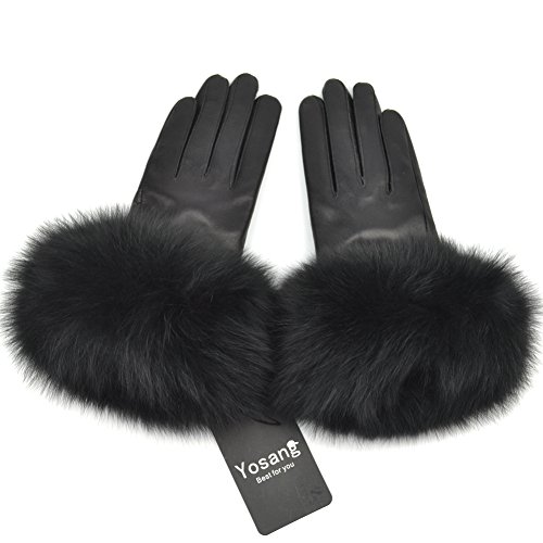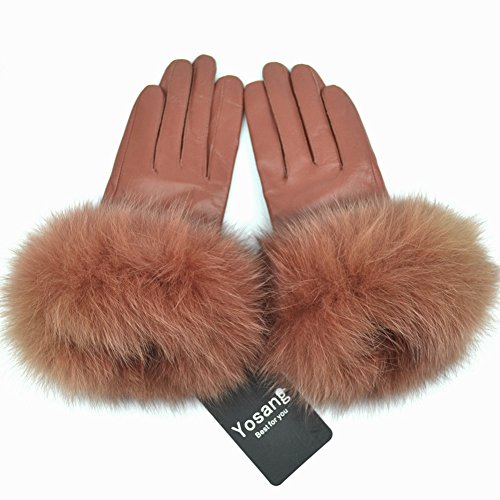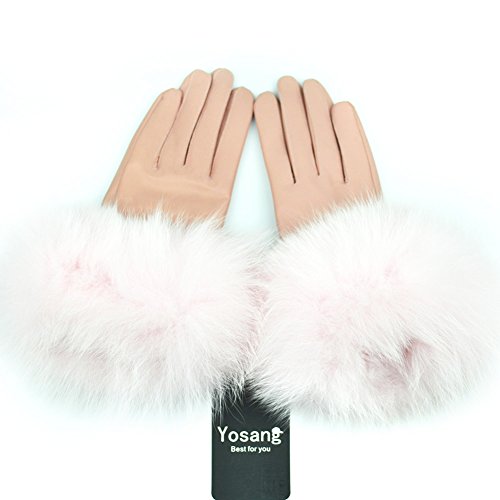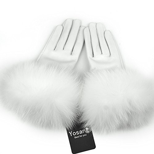 Product Description Yosang luxury winter gloves with soft fox fur around the wrist, fashion, cool and distinctive. Great for dressing up to shop, go to a party, or just go for a walking. Made from lambskin leather, these women's gloves are remarkably soft, molding to your hands as you wear them. The fox fur lining adds additional comfort and warmth. A slim, elegant fit makes for a great impression when you pair these leather gloves with your favorite outerwear. Multicolors at your option: white, black, grey, wine, rose, coffee, light pink Size: Large(6.7-7.1 in/17-18 cm), X-Large(7.2-8.0 in/18-20 cm)