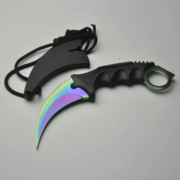 | [해외] 사냥 전술 고정 나이프 5Cr13Mov 블레이드 알루미늄 핸들 포켓 캠핑 서바이벌 스트레이트 EDC 칼 무지개 색 |