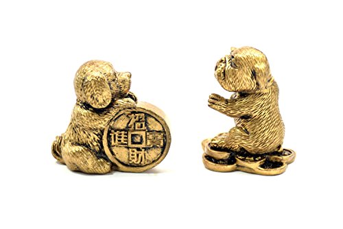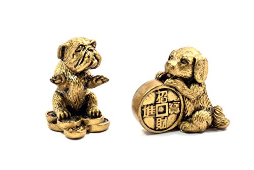 2018 Chinese year of dog Horoscope Chinese Zodiac Handmade pair Resin Dog With Coin Collectible statue Figurine Sculpture (bronze)