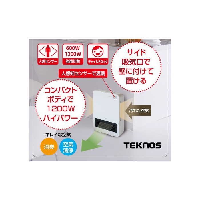 TEKNOS 소취 기능 첨부 와 세라믹 팬 히터 인감센서 부착 (온풍/송풍 교환 가능) ※1200W/600W 2단계 교환식 ※덤 첨부