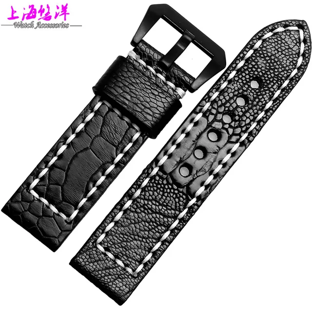 | [해외]시계 밴드 24 미리메터 26 미리메터 새로운 남성 진짜 정품 타조 가죽 시계 줄 시계 스트랩 accessrioes 팔찌 시계 버클 |