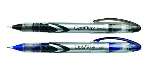 -. Title : Staples OptiFlow™ Needle-Tip Rollerball Pens, Fine Point, Blue, Dozen (15195)