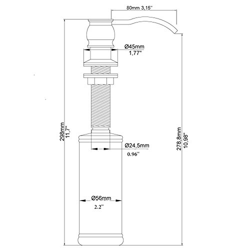 GICASA Built In Deck Mount Liquid Lotion Kitchen Countertop Metal Soap Dispenser, Brushed Nickel Brass Dispenser Pump with 320ml Bottle