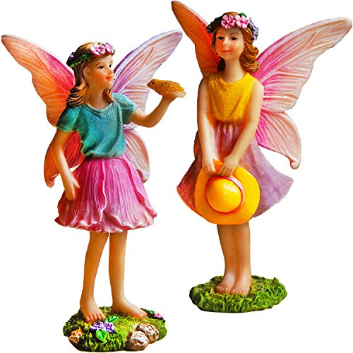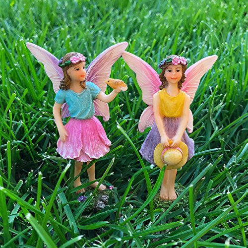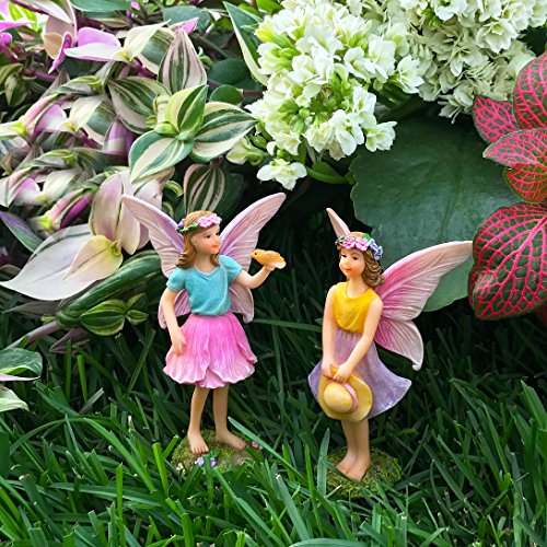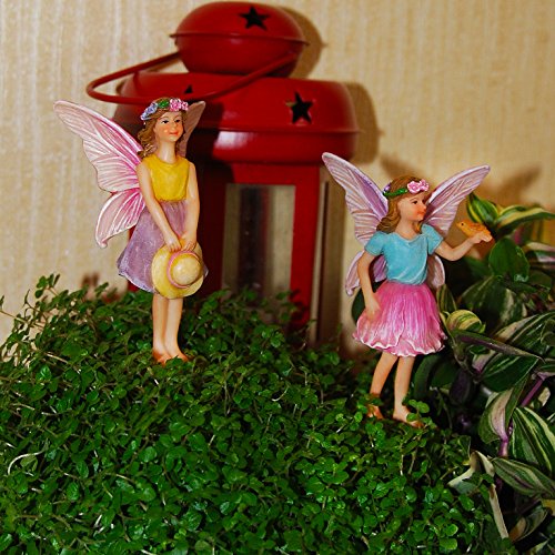 Fairy Garden - Fairy Figurines - Miniature Garden Kit - Walking Girls Set of 2 pcs for Outdoor or House Decor - By Mood Lab