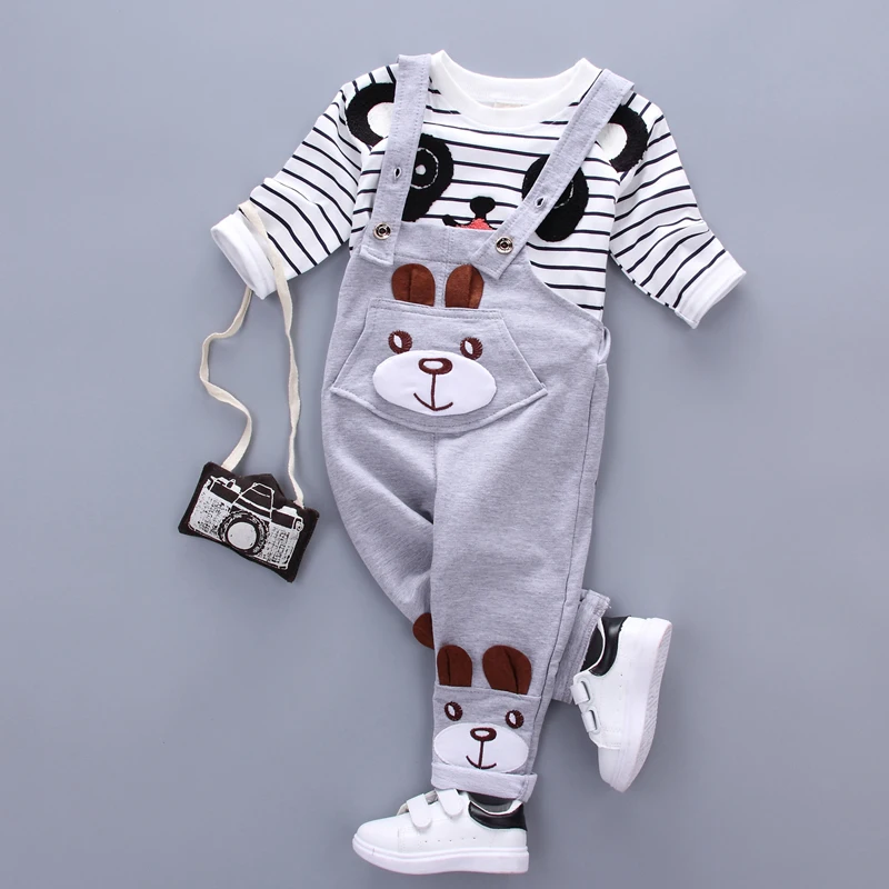 春夏の赤ちゃん男の子女の子漫画パンダ服セットファッション子供tシャツオーバーオール2ピース/セット2018子供綿トラックスーツ