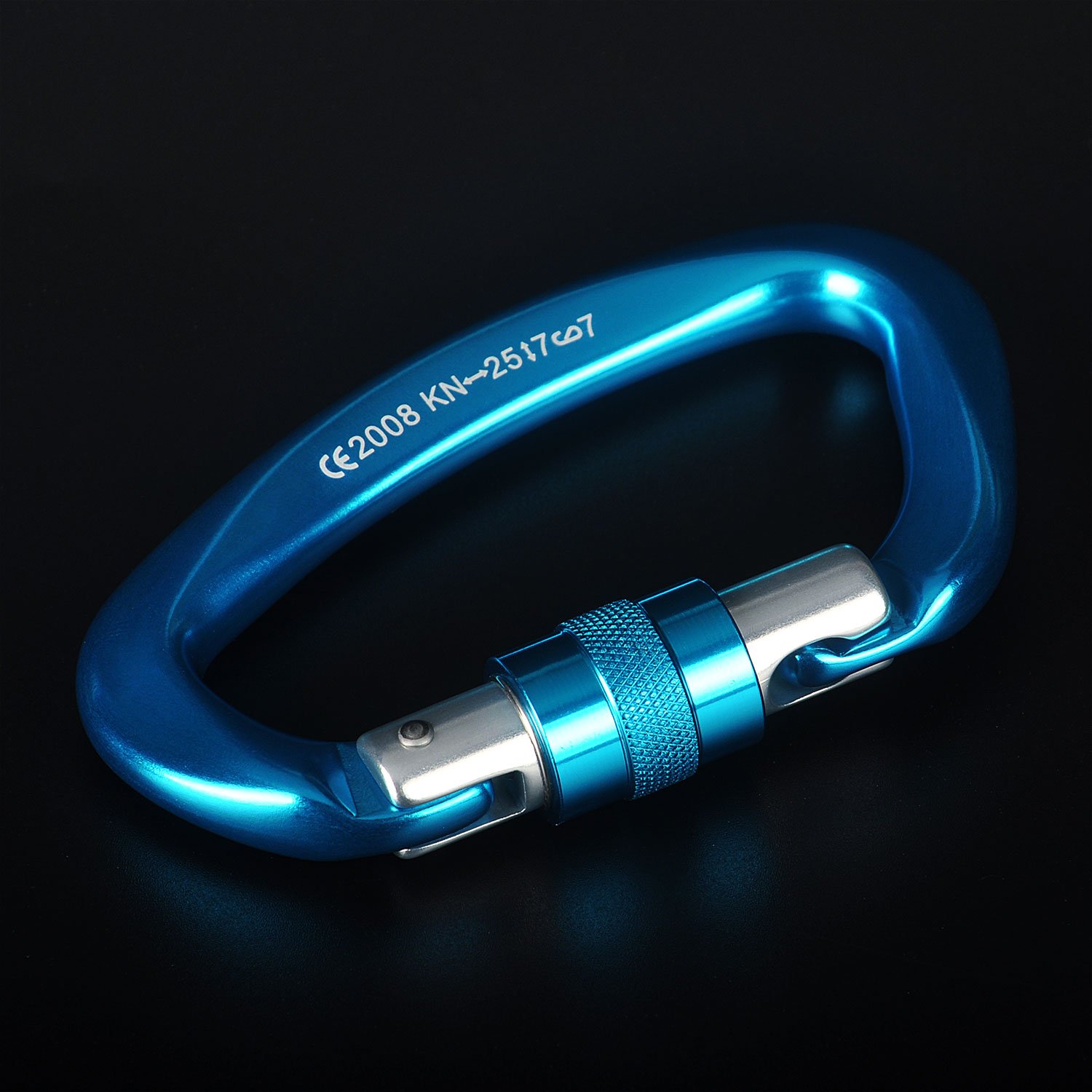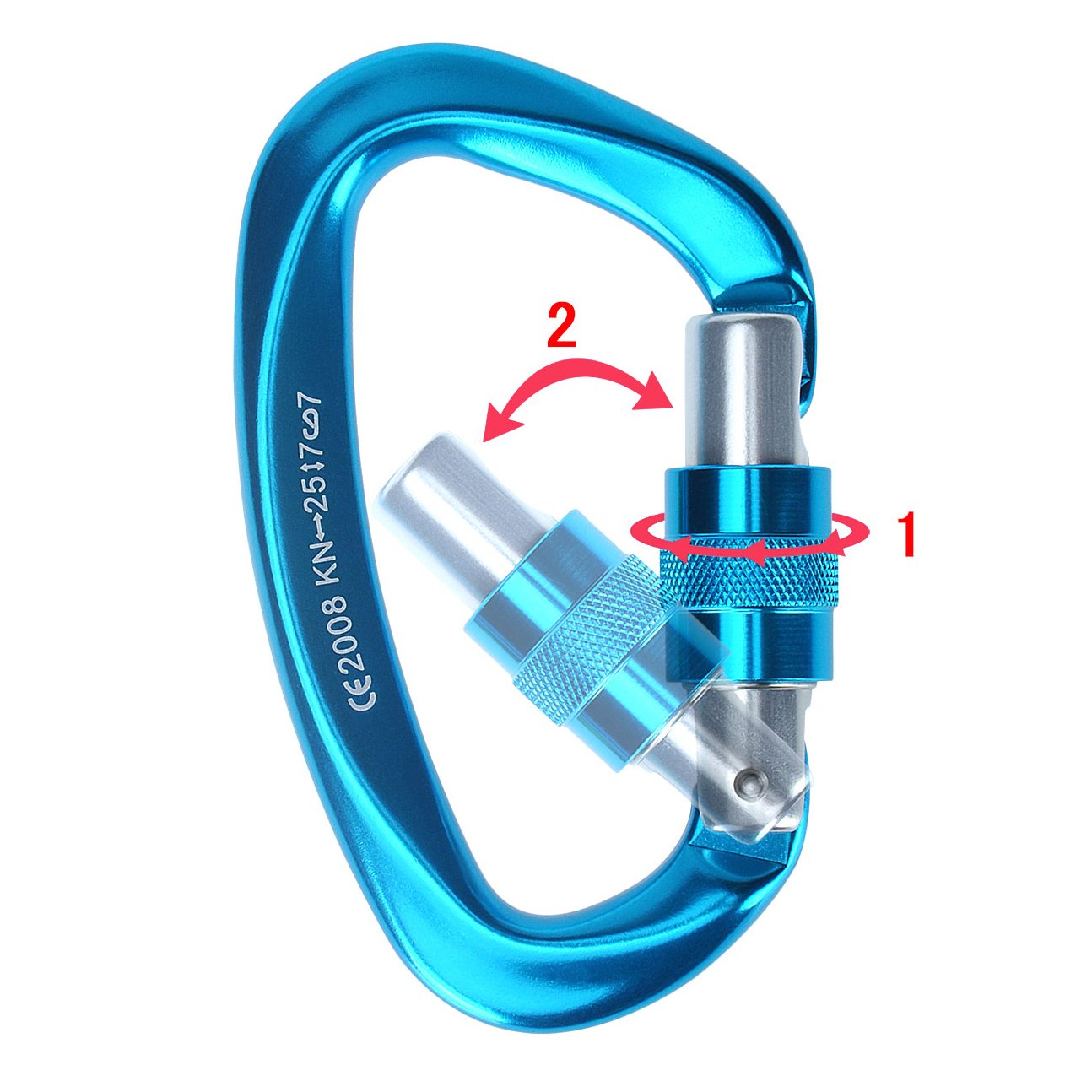 "CE 2008" on the right side indicates that this carabiner is a product that has passed European standards.