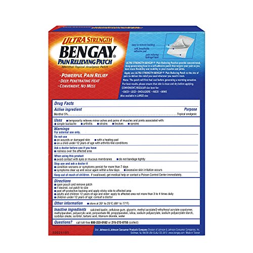 -. Title : Ultra Strength Bengay Pain Relieving Patch For Muscle Pain Relief, 3.9 By 5.5 Inches, 5 Count