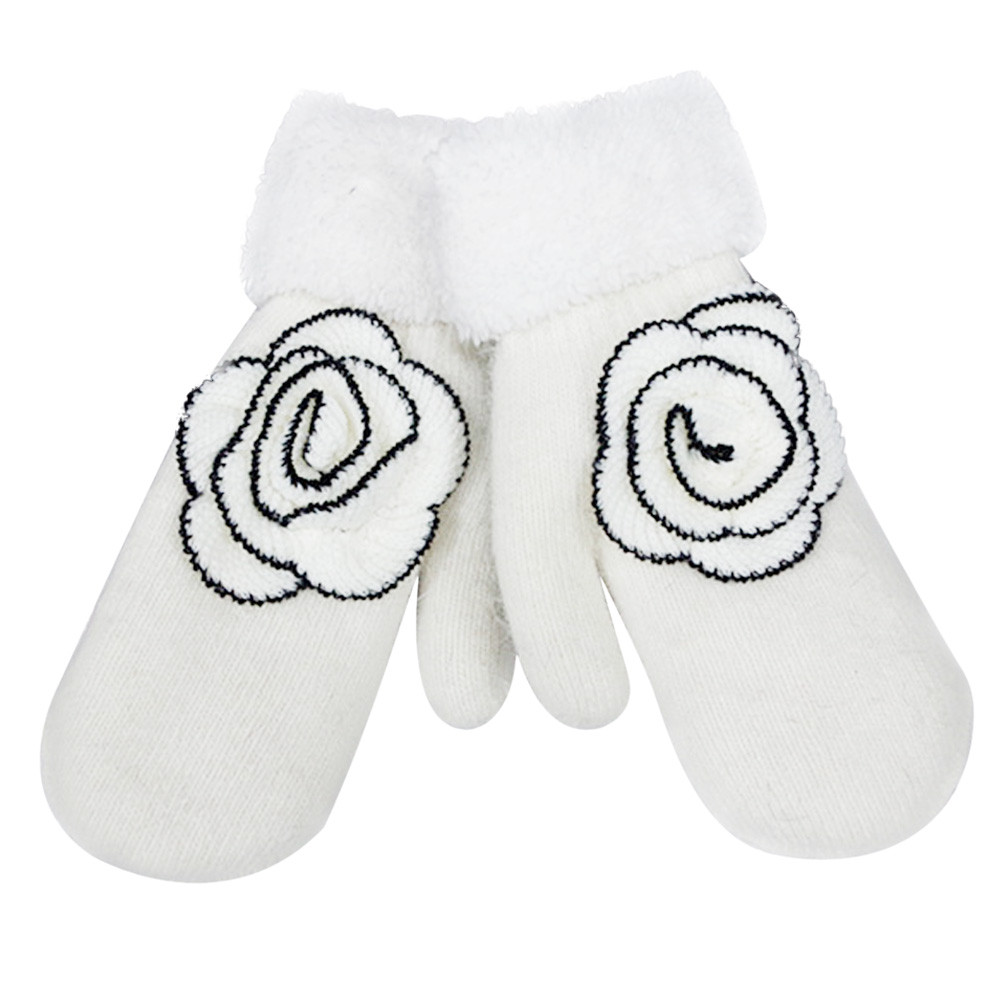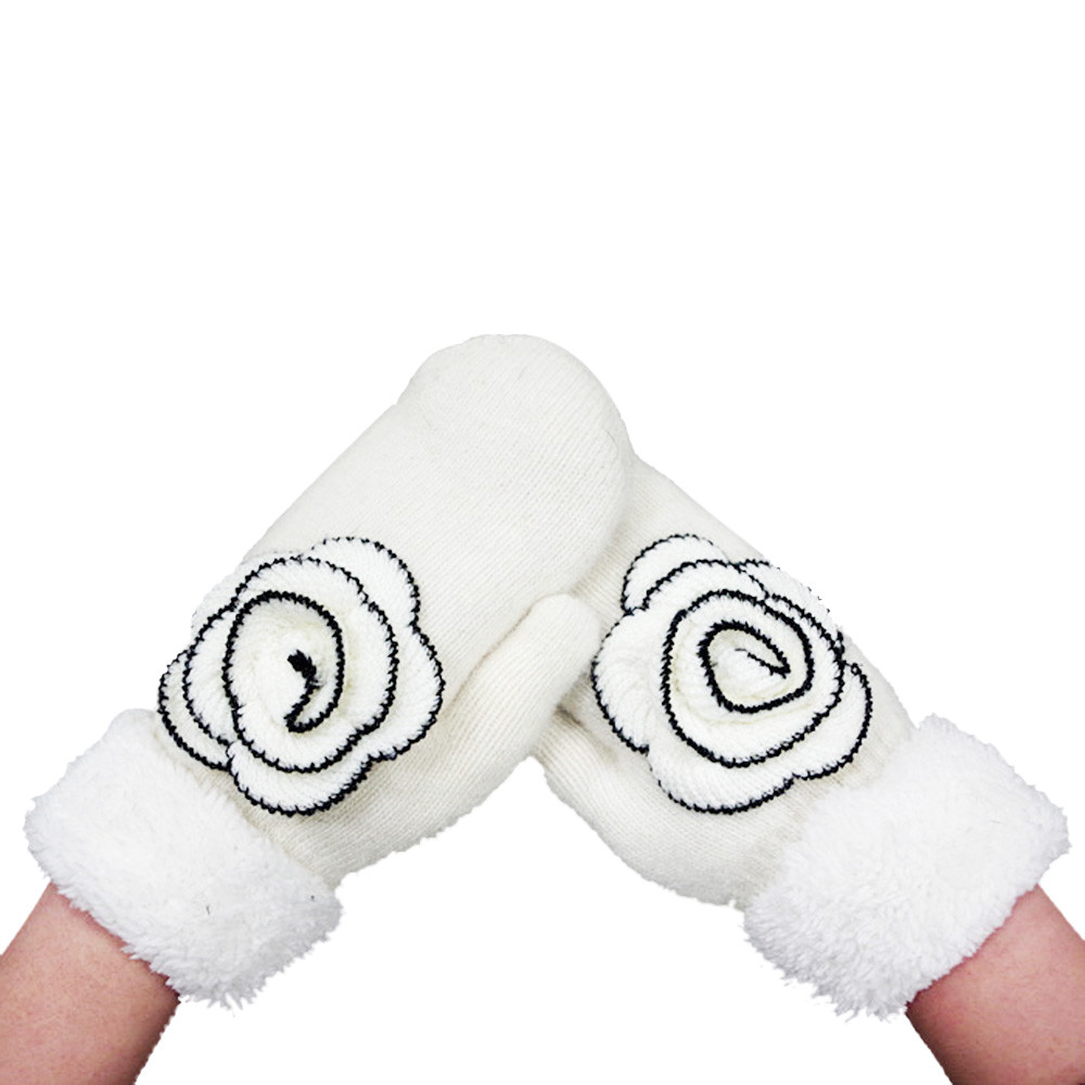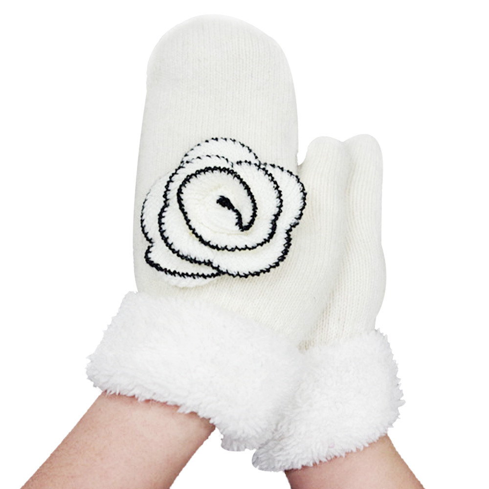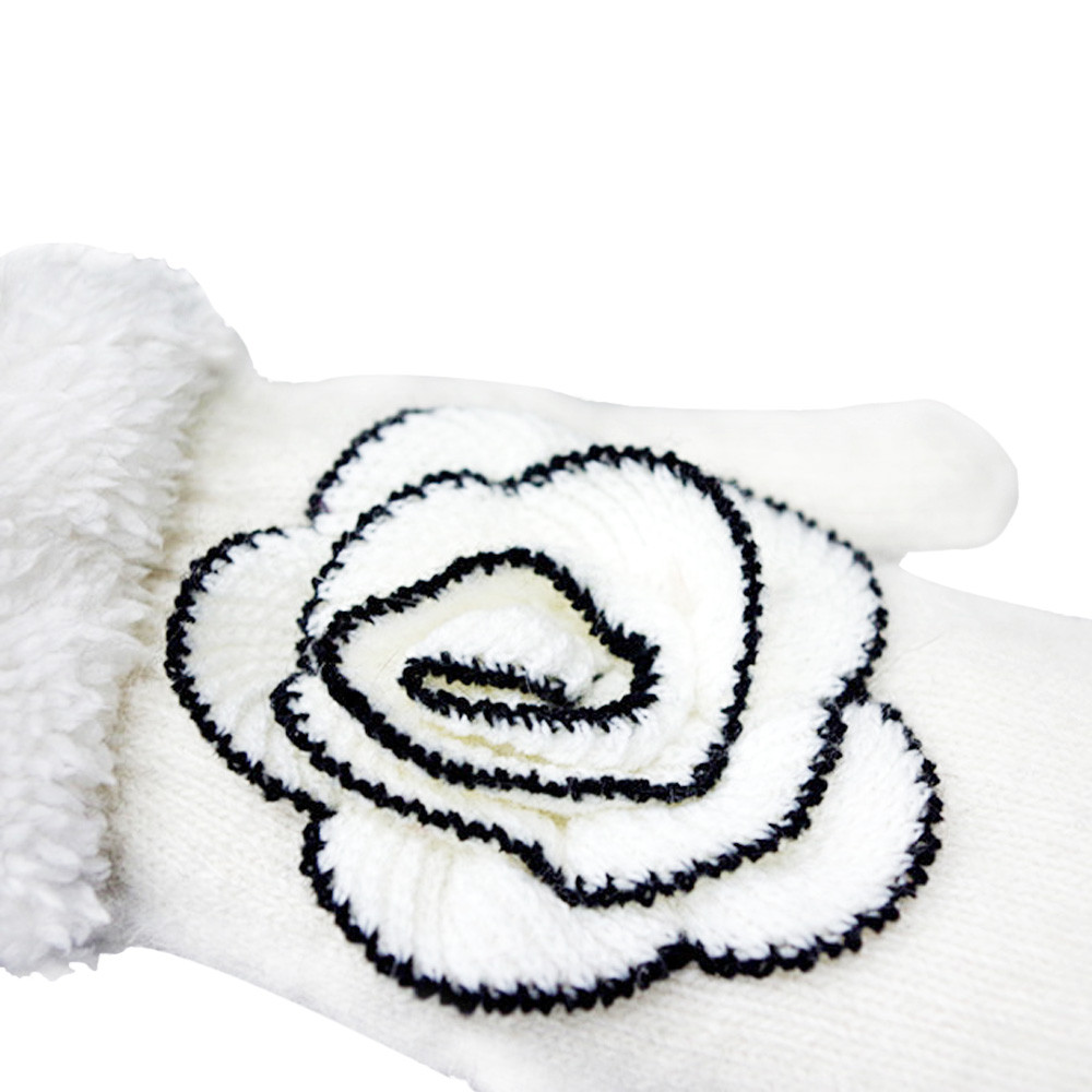 Women\'s Warm Winter Gloves Camellia Flanging Mittens