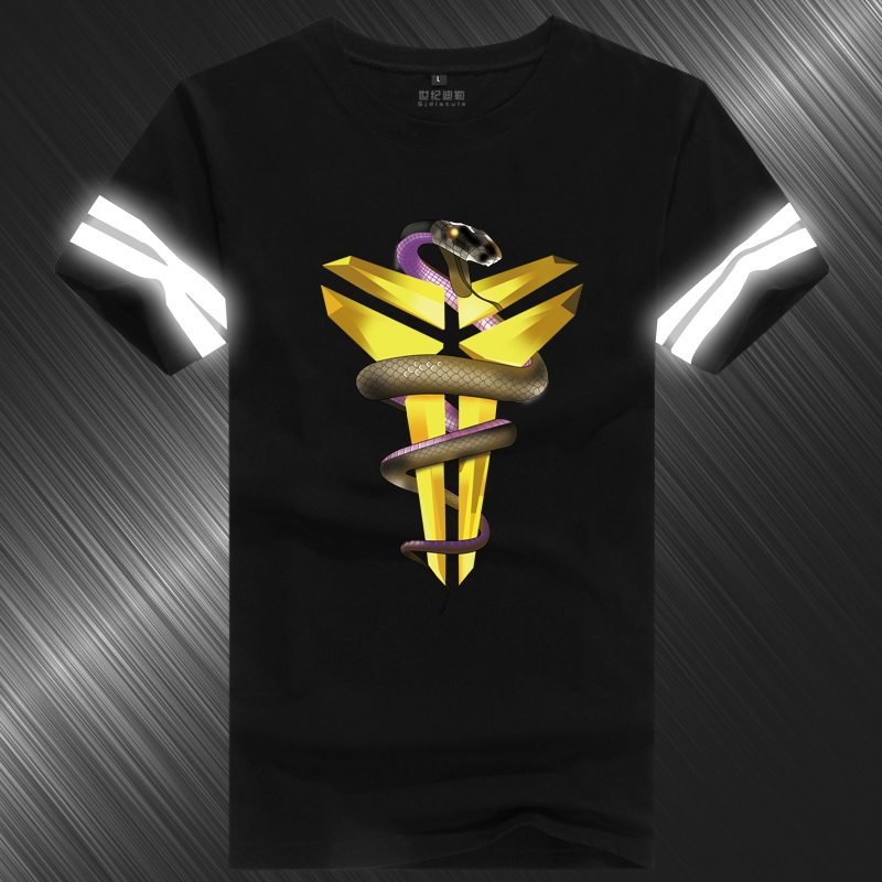 2016夏科比篮球t恤黑曼巴夜光反光衣服加肥大码24号运动短袖男士