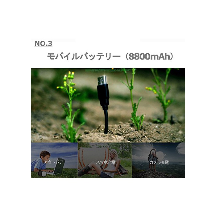 【대용량 모바일 배터리】초대용량:8800mAh의 충전식18650리튬 배터리 내장,모바일 배터리로서도 이용 가능,iPhone 6s에 약4회 이상,Galaxy S7에 약3회,iPad Air 2에 약1회의 충전이 가능,그 외 대부분의 스마트 폰에 복몇차례의 충전이 가능.캠프 등의 아웃도어나 정전시에도 휴대의 전원이 끊어질 걱정도 없음.