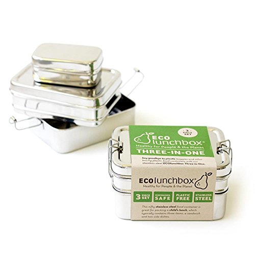 Why should lunchtime mean toxic plastics and mountains of waste? Try stainless steel, the back-to-basics approach to lunch. You won't consume harmful BPA, PVC, vinyl or lead, and the landfill won't consume the average 4,000 pieces of waste from lunchtime alone. Safe for your family's lunches and completely reusable, tried and true stainless steel wins again. Designed by a experienced lunch-packer and mother of two, you can be assured that ECOlunchbox will exceed your lunchtime needs. Rectangular 3-in-1 convenient nesting design prevents side dishes from mushing together, making any child or adult happy. Exceptionally Eco-friendly stainless steel lunchboxes, snack containers and more.