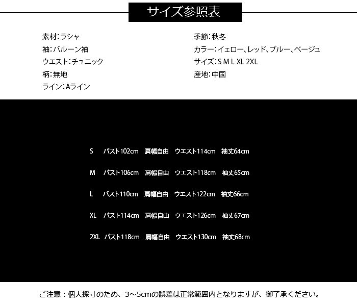 チェスターコート レディース 大きいサイズ ロング丈 秋冬アウター 無地 ラシャコート レディース ジャケット 通勤 2018秋冬新作 ピーコート レディース 大きいサイズ ロング丈 アウター 無地商品詳細素材:ラシャ袖:バルーン袖ウエスト:チュニック柄:無地ライン:Aライン季節:秋冬カラー:イェロー、レッド、ブルー、ベージュサイズ:S M L XL 2XL 産地:中国サイズ参照表S バスト102cm 肩幅自由 ウエスト114cm 袖丈64cmM バスト106cm 肩幅自由 ウエスト118cm 袖丈65cm L バスト110cm 肩幅自由 ウエスト122cm 袖丈66cmXL バスト114cm 肩幅自由 ウエスト126cm 袖丈67cm2XL バスト118cm 肩幅自由 ウエスト130cm 袖丈68cmご注意:個人採寸のため、3~5cmの誤差は正常範囲内となりますが、ご了承ください。チェスターコート レディース 大きいサイズ ロング丈 秋冬アウター 無地 ラシャコート レディース ジャケット 通勤 2018秋冬新作 チェスターコート レディース 大きいサイズ ロング丈 アウター 無地