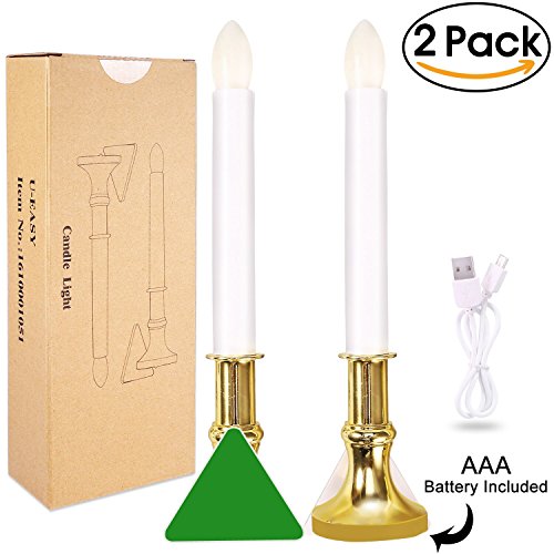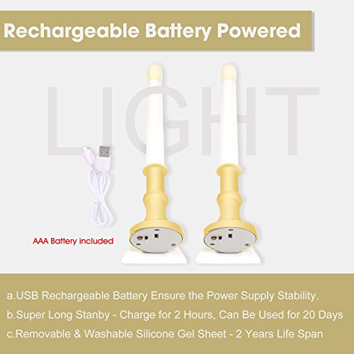 LED Candle Light, DEALIKEE Flameless Electric Light-Sensitive Window Lights with Removable Washable Silicone Sticker, USB Rechargeable Battery Power Wall Lamp Christmas Decorative Light.( 2 Pack )