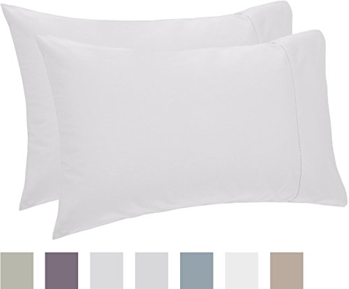 Pinzon 400-Thread-Count Egyptian Cotton Sateen Hemstitch Pillowcases - Standard, White (Set of 2)