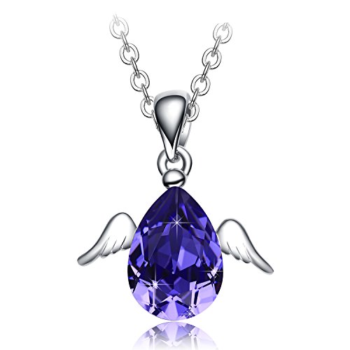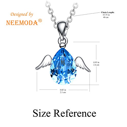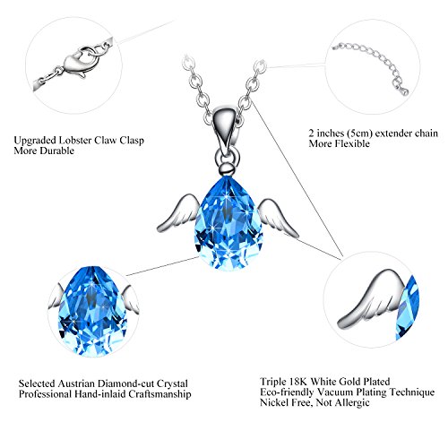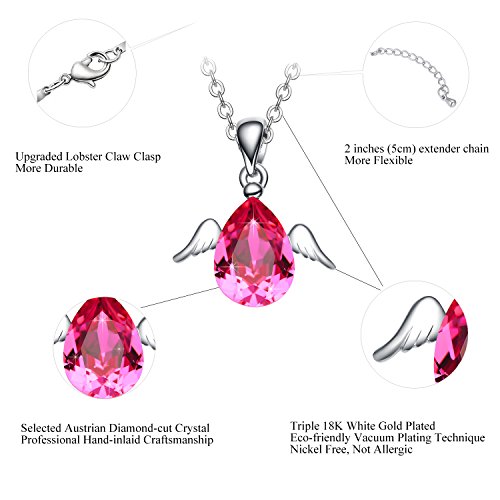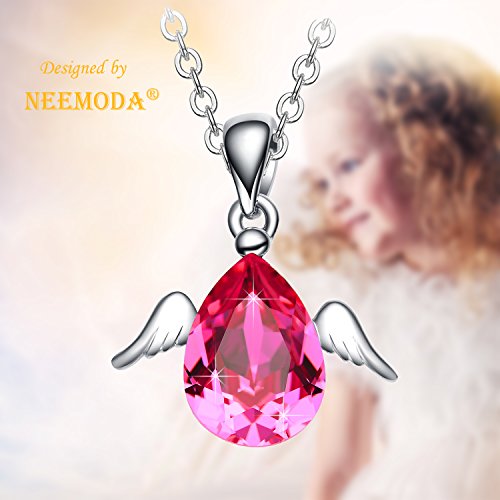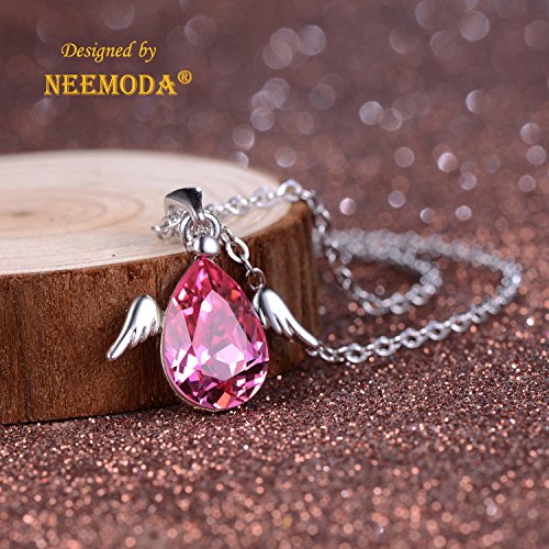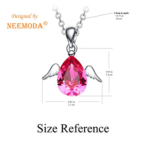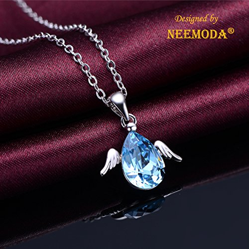 -. Title : NEEMODA "Cute Angel" Austrian Crystal Pendant Necklace with White Gold Angel Wings Deluxe Gift Box
