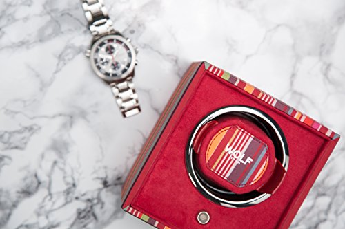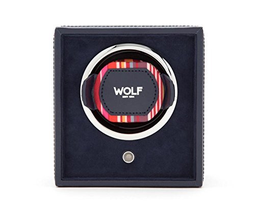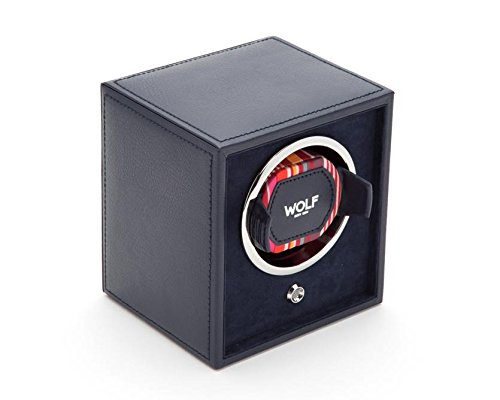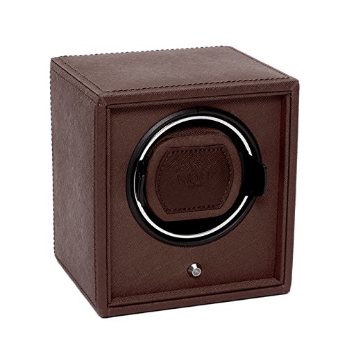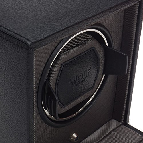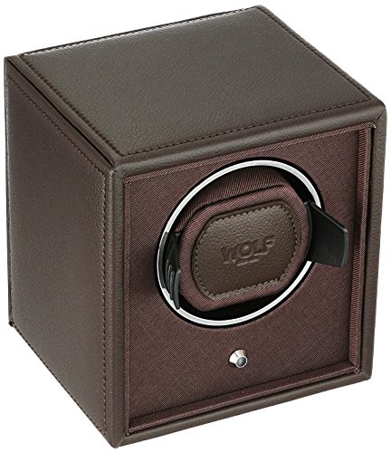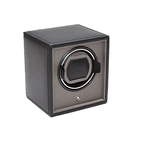 Studio : Wolf Designs Inc Publisher : Wolf Designs Inc Product Description The travel-ready WOLF Cub Winder is a simple user-friendly design with intuitive controls and pre-programmed settings. The all-wood frame flaunts a pebbled faux leather exterior in distressed black with bright chrome accents. A modular unit, the Cub Winder can be stacked with other devices to create a larger unit and an even more impressive display for your collection. Additional Features Intermittent rotation with pause and sleep phases pre-programmed Includes 110-240V AC power adapter Can also run on 2 AA batteries (sold separately) Dimensions: 5.25W x 4.5D x 5.75H in.. Single winder module. Choose from available faux leather colors. Coordinating grosgrain faceplate. Chrome-finished hardware. 0