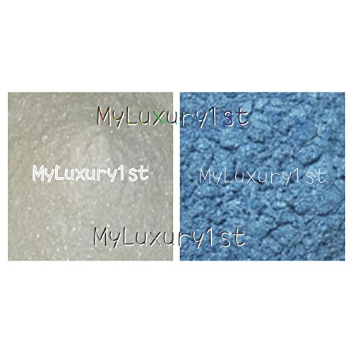-. Feature : You will receive: 1 grams of each color. Comes in 1g sample interlock baggies. Both have Shimmer finishes. / These are loose powder pigments that CAN BE USED in general cosmetics including nail polish making, lotions, soaps, and many other formulations. / You can use these cosmetic grade micas to color and make handmade products. / 1 gram samples. Approved powder Color Additives in White pigment and Blue which are both Micas. / Use these colors to test batch, or make eye shadows and lip products or sample before you try leading brands.