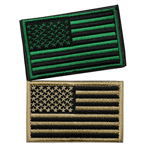 Bundle 2 pieces Tactical US Flag Patch - Green & Gold - American Flag Patches with Hook/Loop Backing by Stormshopping