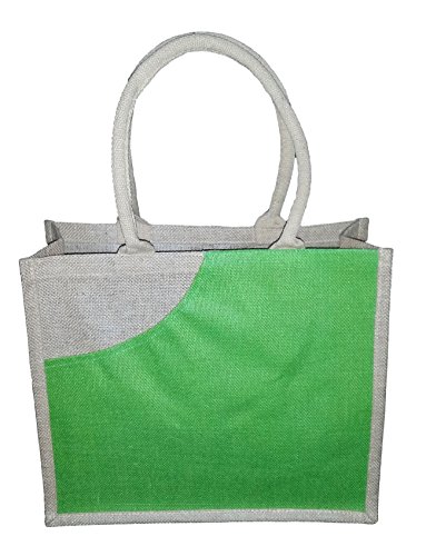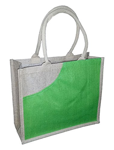 Eco-friendly Jute Shopping Tote with Accent Front Pocket 13.5" X 15.5" X 6.25" (Green)