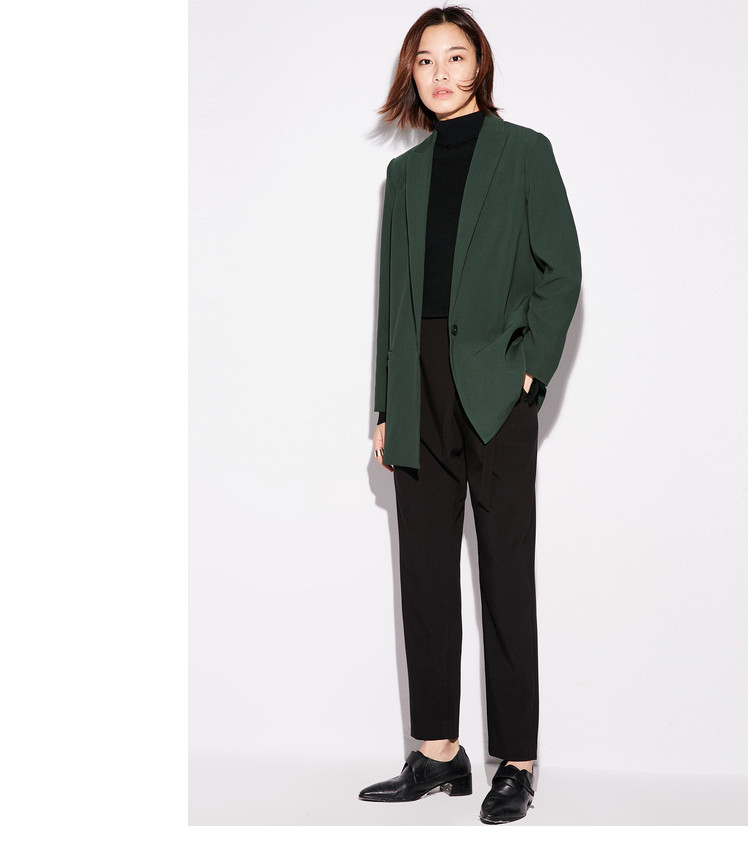 | 面料成分: | 面料:70.9%聚酯纤维,21.9%粘纤,7.2%氨纶 里料:100%聚酯纤维 |