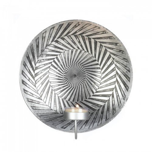 Studio : Tom Co. Publisher : Tom Co. Binding : Kitchen Product Description Uniquely dazzling, this gorgeous wall sconce is sure to up the wow factor on your wall. Made from iron, the plate features a silver finish with an etched geometric pattern that will dance with light when you light a tealight candle in the outstretched candle platform. IRON. 7.62" x 3.25" x 8". 0