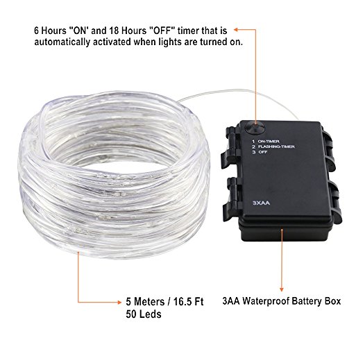 -. Title : ER CHEN Solid Tube Led Fairy String Lights- 16.4Ft 50 Leds Battery Operated Waterproof String Rope Lights With Timer for Christmas Party Wedding Holidays Indoor and Outdoor Decorate