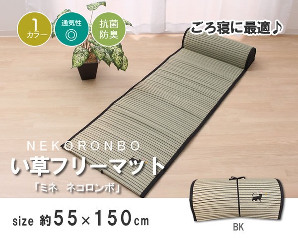 【商品名】猫柄 ネコ柄 ねこ柄 い草マット ごろ寝マット フリーマット 『ミネ ネコロンボ』 約55×150cm