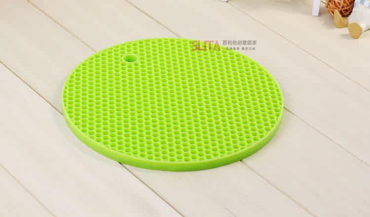 ? ??蜂窝硅胶垫,造型可爱,颜色清新。具有高耐热度(230度)和柔韧性,经久耐用,安全无毒。炒菜锅、煲汤砂锅可直接放置在上面,用料厚实,有效保护餐桌。 ? ? ? ??? ? ? ?