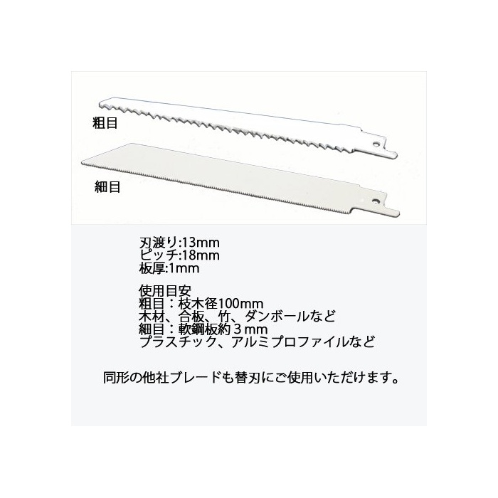 전동 톱은 스트로크 길이 약13mm스트로크수3000회/분에 최대경 약10cm의 가지까지 절단 가능.