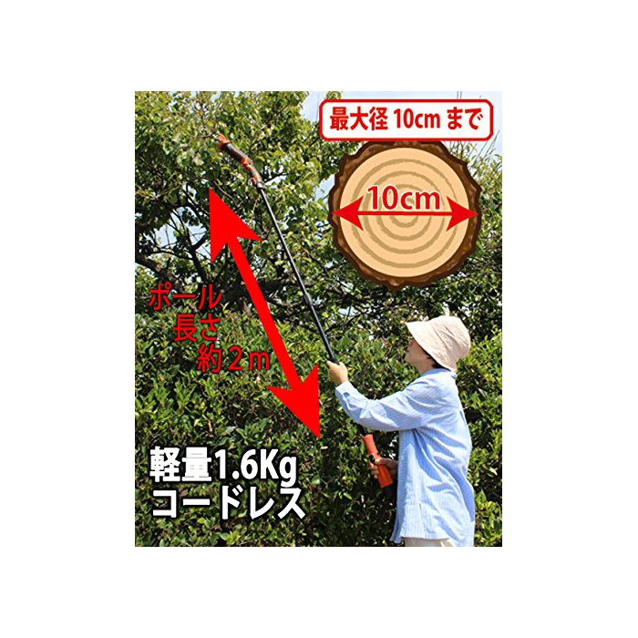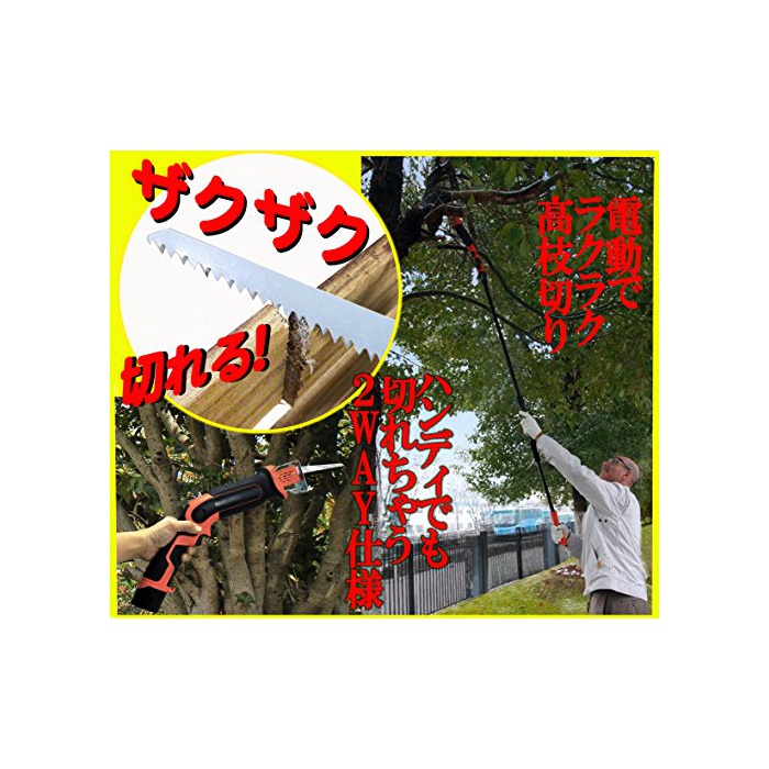 전동 recipro saw에 전용의 연장 폴이 붙었다, 전의 오다/고가지 잘라 2WAY사양.폴 설치 때는 전장 약2M.