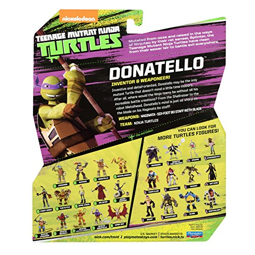 -. Binding : Toy -. Brand : Teenage Mutant Ninja Turtles -. EAN : 0885180628424 -. Feature : Inventor & Weaponeer / With more than 12 points of articulation, these action figures are the most highly detailed and articulated Turtle figures ever made! / Each turtle figure is uniquely sculpted, with heights ranging from 4.25 inches to 5.25 inches, to capture the individual personalities of the characters from the Teenage Mutant Ninja Turtles TV show / Each Turtle is wearing his signature bandana and comes packed with their two core Ninja weapons and added weapons rack for hours of Ninja playing excitement / 2012 Viacom International Inc.; All Rights Reserved; TEENAGE MUTANT NINJA TURTLES and all related titles, logos and characters are trademarks of Viacom International Inc. -. IsAdultProduct : 0 -. Label : Teenage Mutant Ninja Turtles -. Manufacturer : Teenage Mutant Ninja Turtles -. Model : 90617 -. MPN : 90617 -. NumberOfItems : 1 -. PackageQuantity : 1 -. PartNumber : 90617 -. ProductGroup : Toy -. ProductTypeName : TOYS_AND_GAMES -. Publisher : Teenage Mutant Ninja Turtles -. Studio : Teenage Mutant Ninja Turtles -. Title : Teenage Mutant Ninja Turtles New Deco Donatello Figure -. UPC : 885180628424 -. Warranty : No Warranty