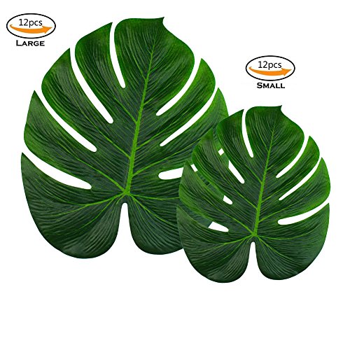 Wolfride 24 Pieces Tropical Imitation Plant Leaves Artificial Palm Fronds Leaf for Birthdays/ Prom/ Events/ Weddings Decorations
