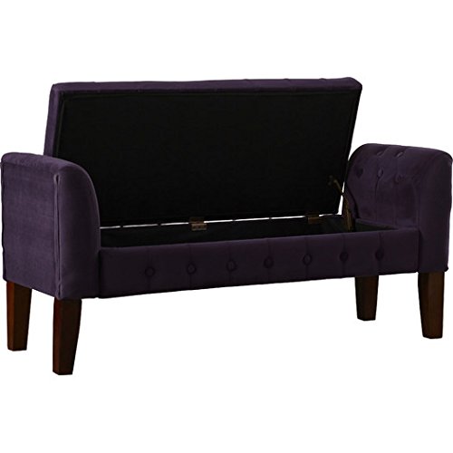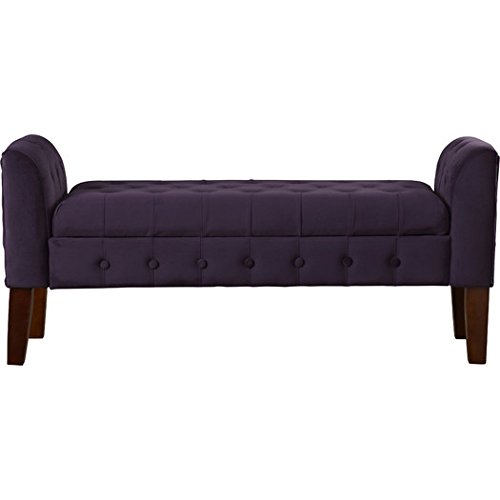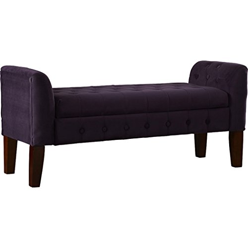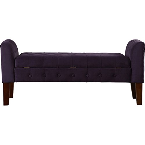 -. Brand : Three Posts -. Color : Plum -. EAN : 9399293736941 -. Feature : Decorative solid wood legs in mid tone brown. Multi-functional item that works in many rooms / Use as a settee in the living or dining room. All over decorative button tufting / Use as end of bed bench for scarves, purses. Double safety hinged lid. / Use as a decorative seating in front of window. Material: Velvet fabric / Dimensions: 23" H x 50" W x 18" D; weighs approximately 43.4 lbs -. Label : Three Posts -. Manufacturer : Three Posts -. ProductGroup : Furniture -. ProductTypeName : HOME_FURNITURE_AND_DECOR -. Publisher : Three Posts -. Studio : Three Posts -. Title : Tufted Lift Top Storage Bedroom Bench & Settee in Rich Plum Aubergine