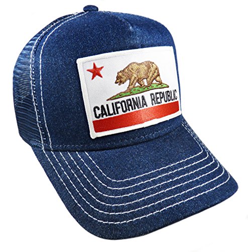 (Strange Cargo Tees)/Accessories/Hats/DIRECT FROM USA/Strange Cargo Tees California State Flag Denim With Contrast Stitch Classic Baseball Cap Hat Sn...