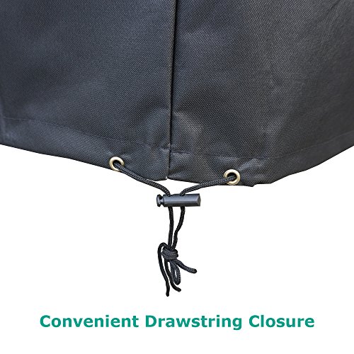 - Two convenient handles at sides make the cover easy to put on and off your grill, also can be used as loops to hang up at side when your grill is in use