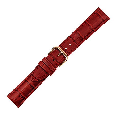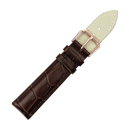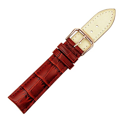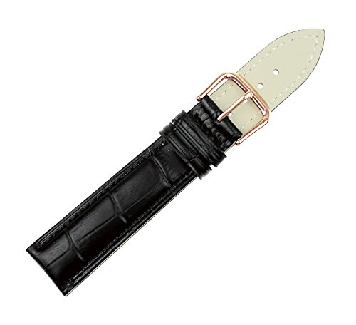 -. Title : RECHERE Alligator Grain Leather Watch Band Strap Rose Gold Pin Buckle Black Brown Blue Red White