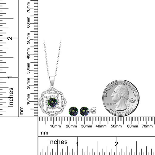 -. Title : 5.06 Ct Round Green Mystic Topaz 925 Sterling Silver Pendant Earrings Set