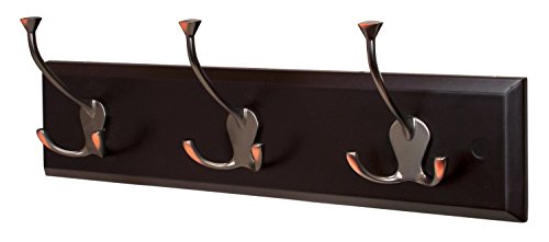 Kiera Grace Collin Rack, 3 Oil Rubbed Bronze Tri-Hooks, 18-Inch, Espresso