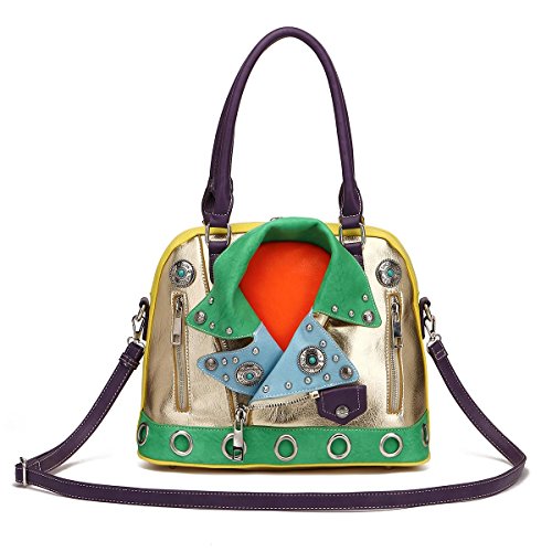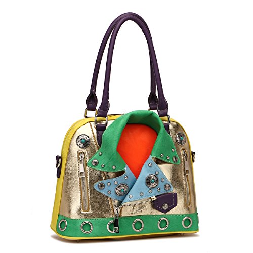 Cowgirl Trendy Motorcycle Biker Handbag Concealed Carry Purse Colorblock Jacket Shoulder Bag