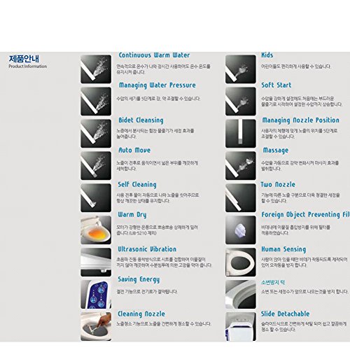 -. Feature : Brand: USPA / Voltage: 220V / 60Hz / 1160W / Size: 466*520*143mm (W*L*H) / 4.4kg / Functions: Heated Seat, Continuous Warm Warter, Two Nozzle, Dry Function etc / Manage Nozzle position, Kids Function, Massage Function, Ultrasonic Vibration