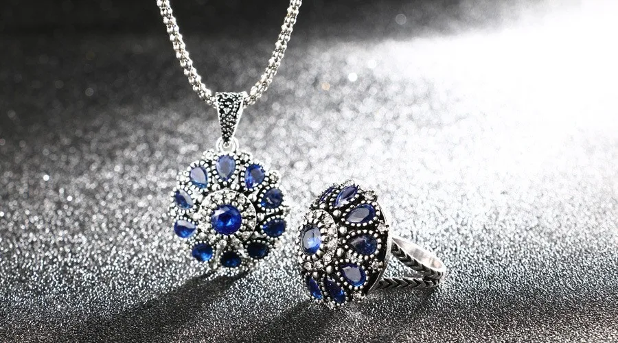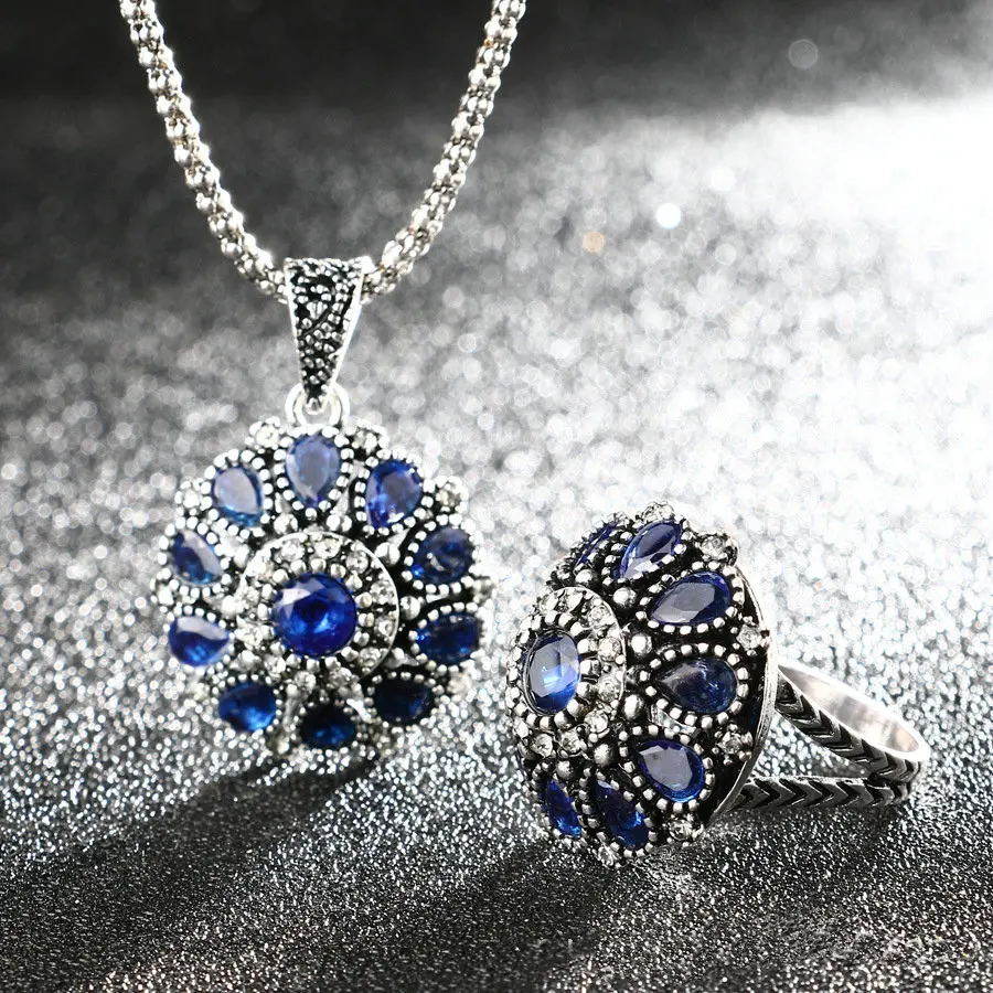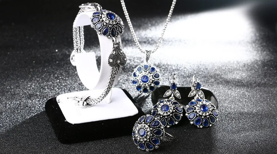 blue jewelry sets:Bracelet Ring Necklace Earrings Set