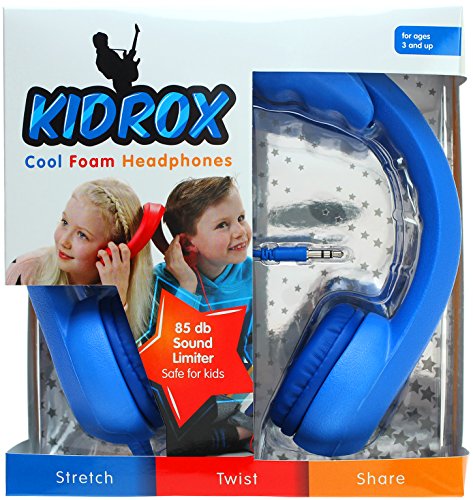 These fun and funky Kidrox are perfect for playing on smartphones and tablets. Kidrox are made from extremely tough flexible Eva foam with 85 decibel limiter which is below safe limit, so your kids' ears are in good hands! Super soft and comfortable ear pads with removable extension pad make Kidrox even cooler. Now available in 5 colors: Orange, Blue, Purple, Red, and Green. 100% Satisfaction Guaranteed - Kidrox Children Headphones come with 1 Year Hassle-Free. Warranty