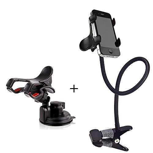 MXtechnic 2-in-1 Cell Phone Clip Holder Stand with Sitck-on Mount + Gooseneck One Clip Clamp mount on car,desk,windshield,dashboard