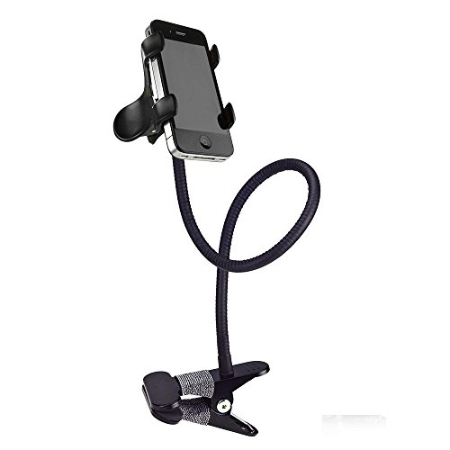 Universal gooseneck mount clip holder with stick on mount is ideal for holding your mobile device car, desk, window shield, dashboard, table, etc for you to enjoy music and phone games with hands free. The flexible arm can be adjusted to any angle for easy viewing