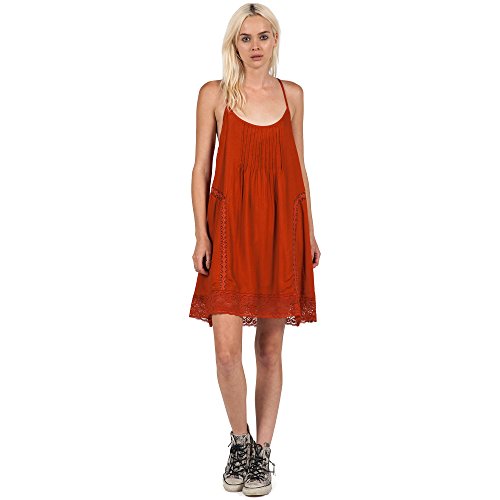 Shift dress featuring pin-tucks beneath scoop neckline and tonal lace insets at skirt Adjustable spaghetti straps crisscross in back Scalloped lace hem Brand : Volcom Item model num : B1331500 MPN(PartNumber) : B1331500-COP EAN : 0887188739157 Product Dimensions(LxWxH) :