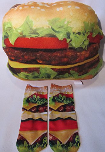 Fun And Soft Novelty Food Throw Pillows (Cheeseburger Pillow & Sock Combo)